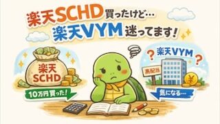 楽天SCHDを10万円分購入したあと、次に気になったのが高配当ETFの楽天VYM。でも「いい商品=今すぐ買う」ではないと感じ、今回は見送りにしました。この記事では、新NISAの成長投資枠で買える楽天VYMの特徴や楽天SCHDとの違い、同じ金額を積み立てた場合のイメージ、そして今すぐ買わない理由を初心者目線でやさしく解説します。高配当投資で迷っている方の判断材料になる内容です。