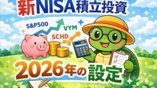 2026年の新NISA積立投資枠について、亀さんをが実際に設定しているファンドと金額をリアルに公開。オルカン、S&P500、楽天VYMの毎月積立と、楽天SCHDのスポット購入内容をまとめました。比較や正解探しはせず、「今どうしているか」だけを記録したブログです。新NISA初心者さんや、積立内容に迷っている方が気軽に読める内容になっています。