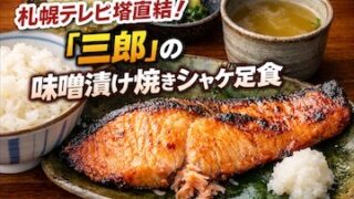 札幌テレビ塔直結の「北海道大衆酒場 三郎 さっぽろテレビ塔店」で自家製味噌漬け焼きシャケ定食を実食レビュー。香ばしく焼かれたシャケにピカピカご飯、味噌汁や小鉢も充実。さらに嬉しい“出汁付き”で締めは絶品お茶漬けに。ランチメニューや店前の雰囲気も紹介します。