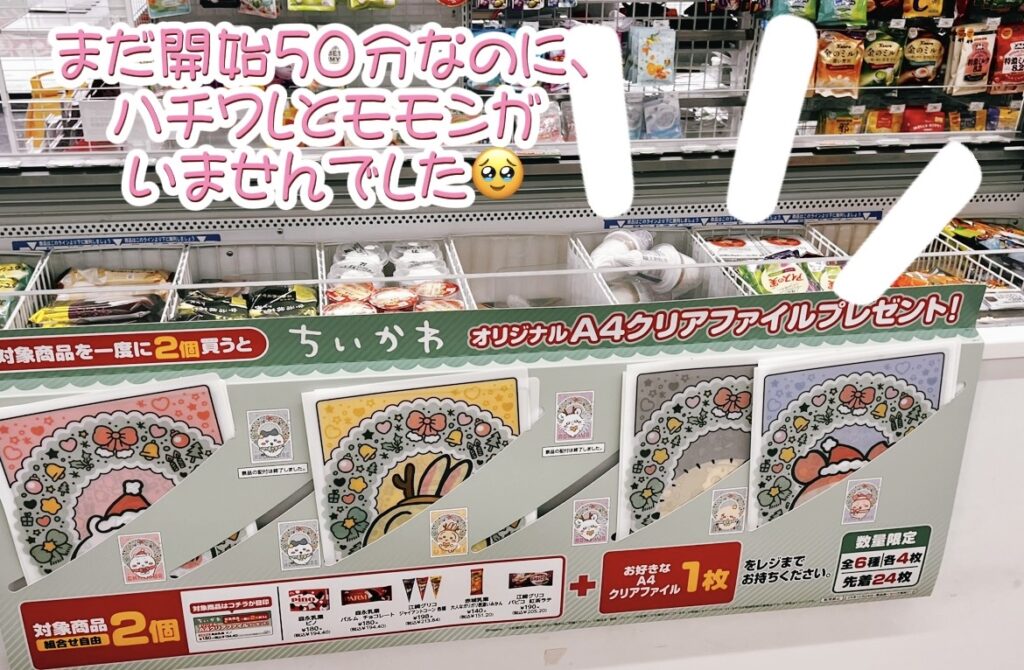 なんとクリアファイルのハチワレとモモンガがすでに売り切れ😭