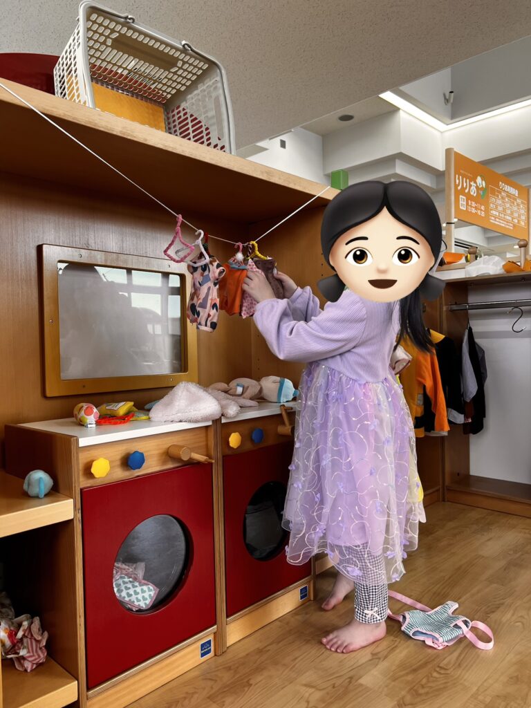 おままごとスペースやお店屋さんごっこ、キッチンのおもちゃなどがあり、子どもたちは想像力をふくらませながら夢中で遊んでいました。