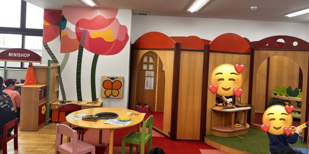 - ベビーエリア:人工芝でハイハイも安心、赤ちゃん向けの遊びスペース