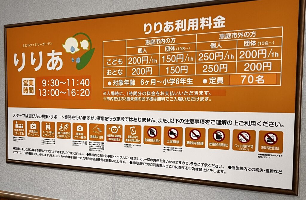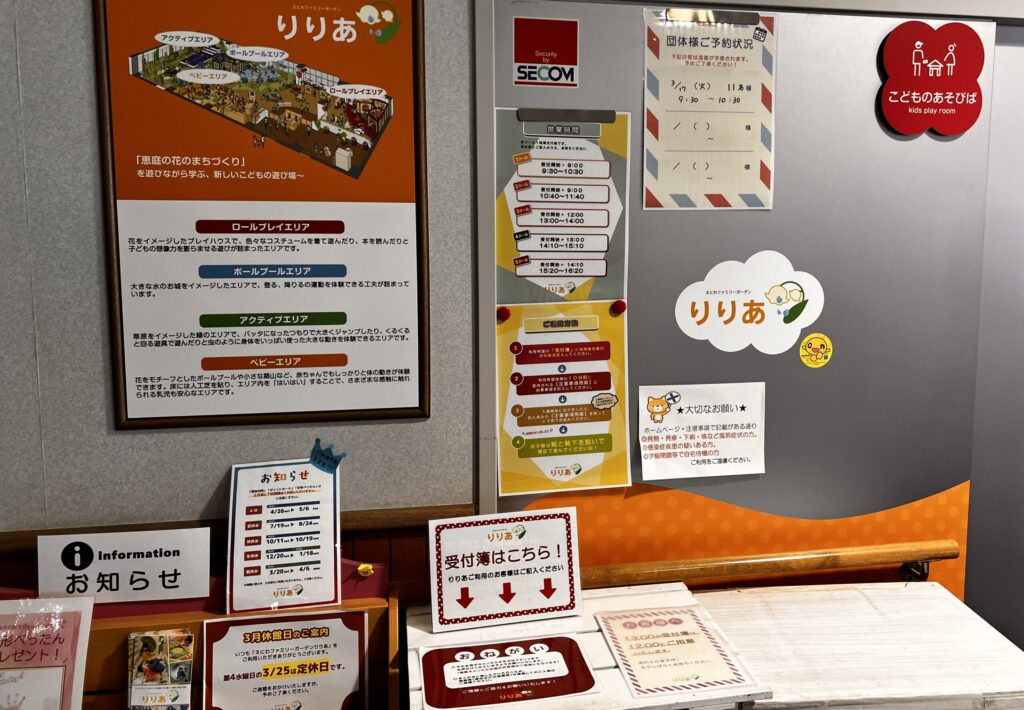 えにわファミリーガーデン「りりあ」の室内遊び場は、1時間ごとの完全入れ替え制で利用するシステムになっています。