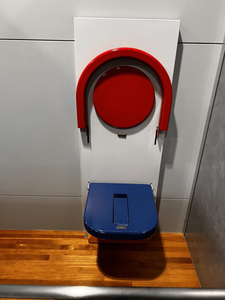 また、大人用トイレにも子どもが立って待てるスペースや椅子が設置されているので、大人一人で子どもを連れていても安心して利用できます。