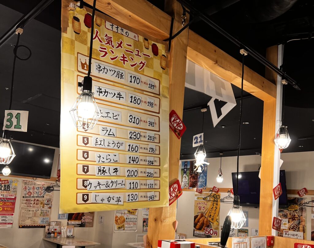 1位は豚串カツ、2位は牛カツ、3位は極上エビ。