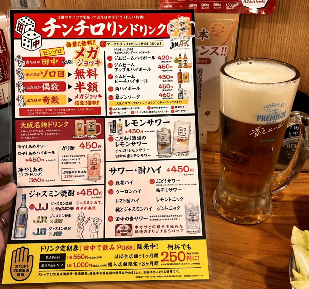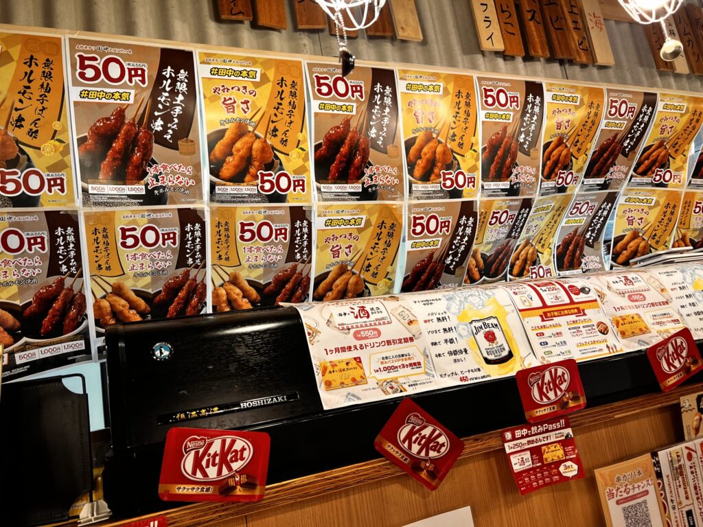 すると目に飛び込んできたのが、牛ホルモン串「#田中の本気」の圧。