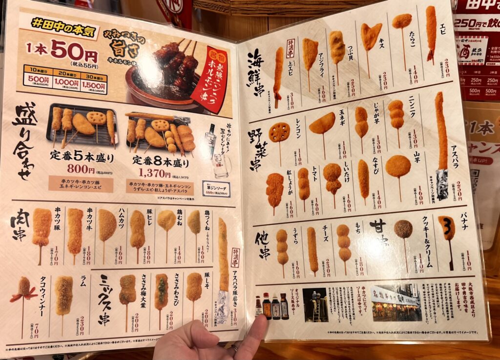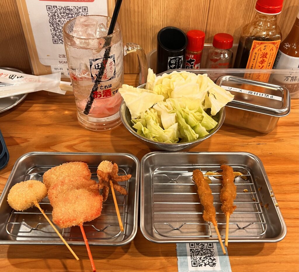 昼から串カツとお酒をゆっくり楽しめて、メニューも豊富、1人飲みのハードルも低め。