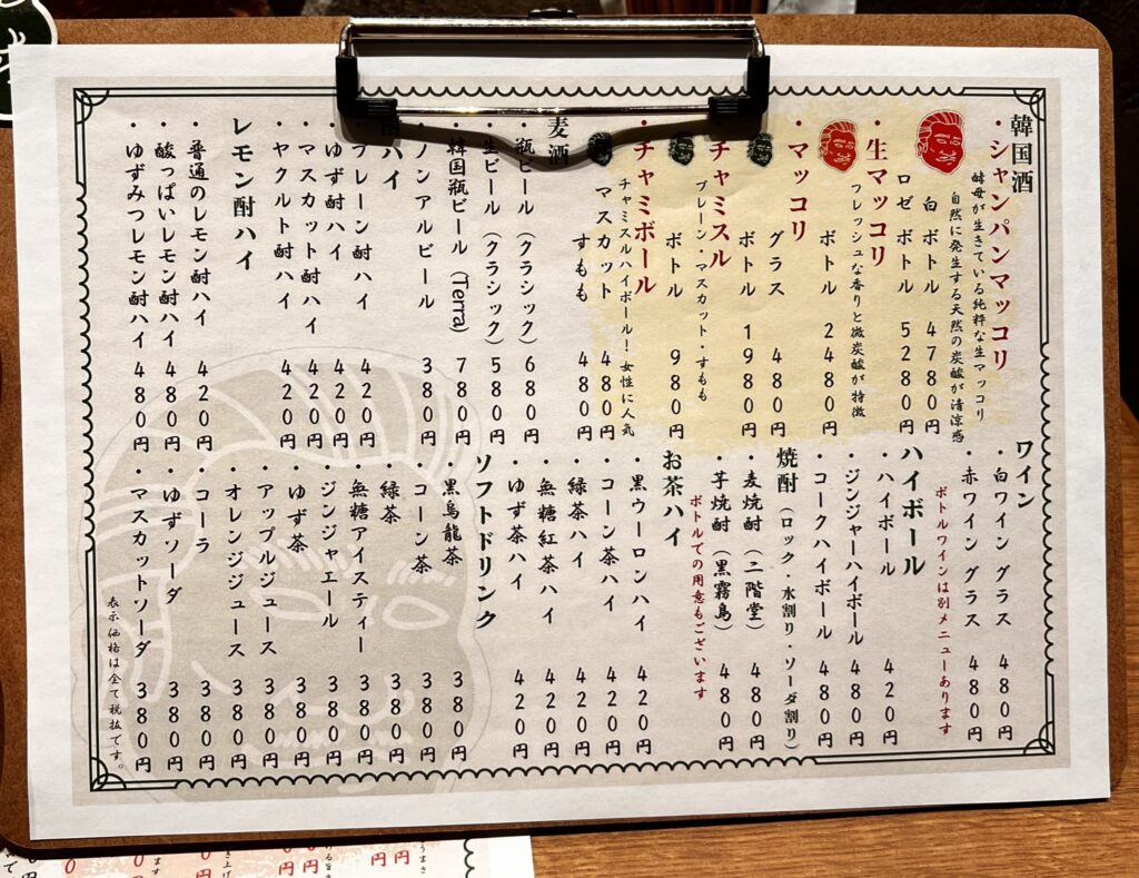 定番の生マッコリもあって、韓国酒好きにはたまらないラインナップ。