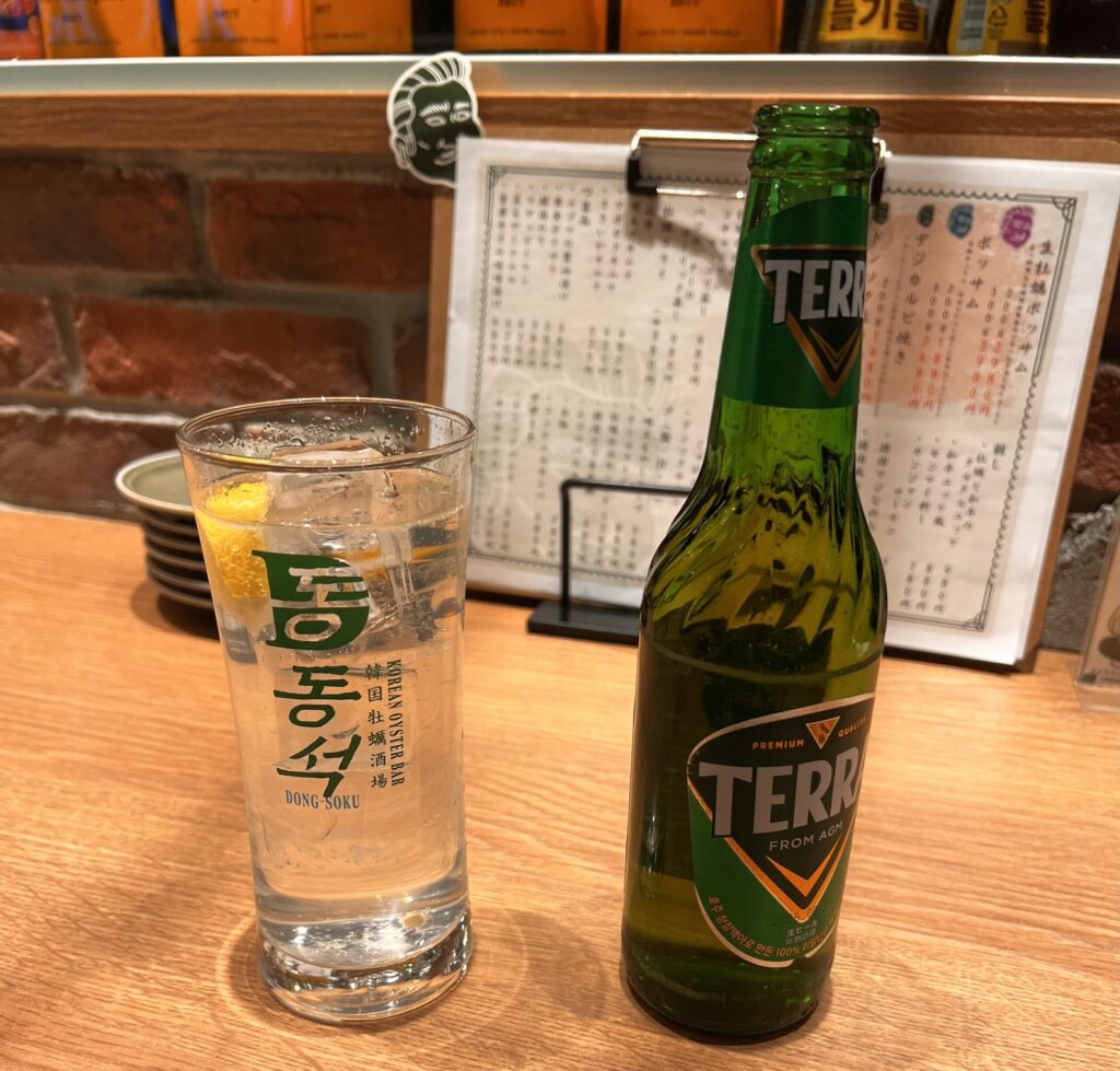 亀さんをは「韓国といえばとりあえずこれでしょ🍺」ってことで TERRA(テラ)ビールを注文。