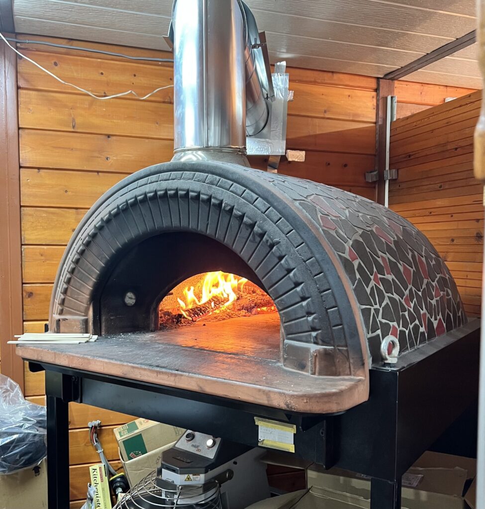 ブースの奥を見ると、なんと本物のピザ用の釜戸がドドーンと登場!