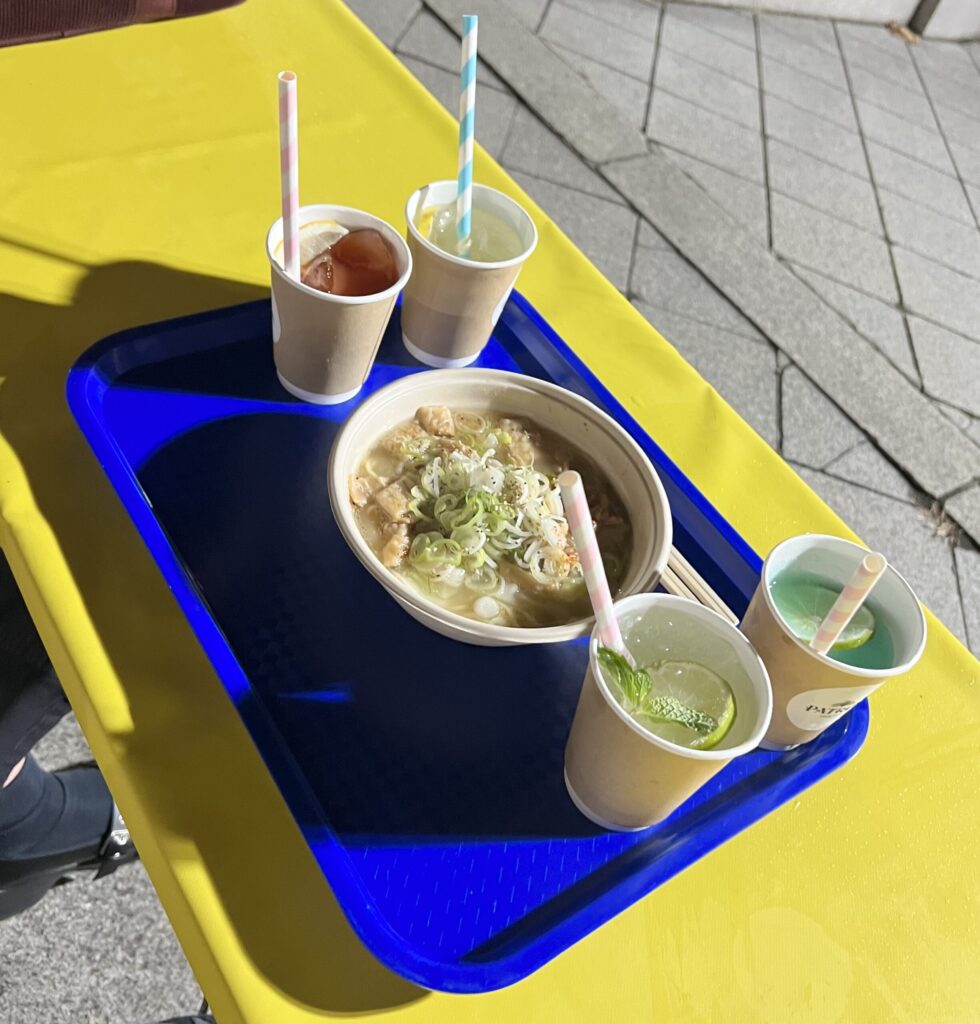 (ラーメンはこの日5店舗並んでましたがラストオーダーギリギリで旭川のホルモン塩ラーメンに決定!店員のお兄さんに「もうラストオーダーだから早くチケット買った方がいいよ!」ん?チケットとは??)