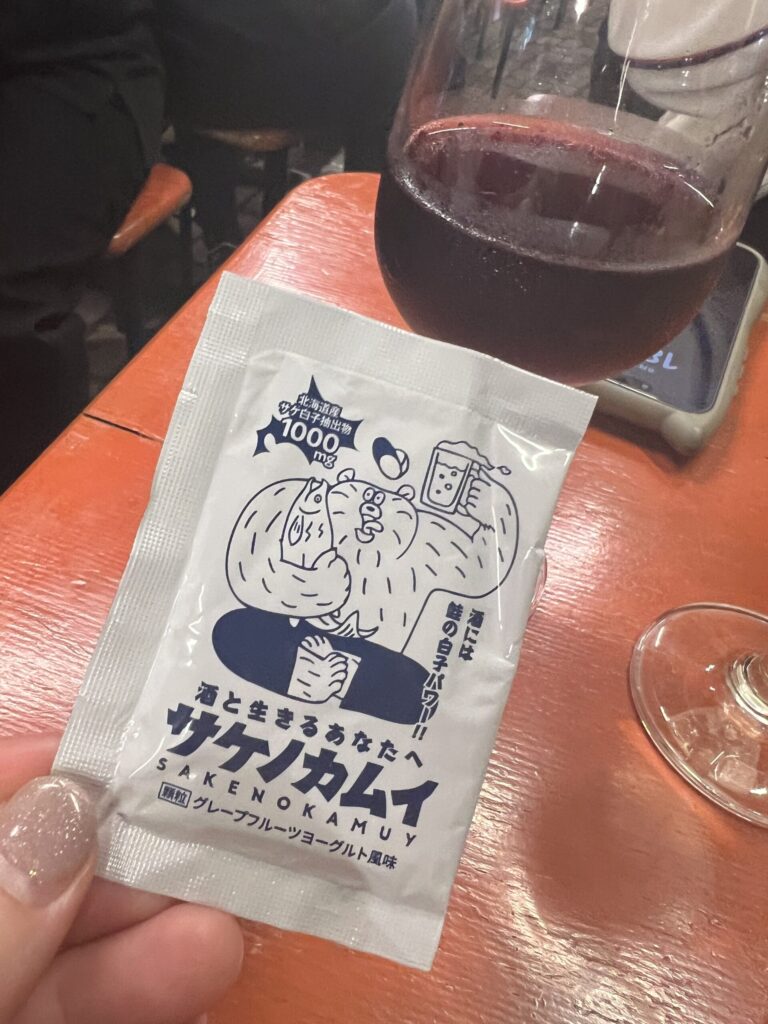 そして、お酒を買うところで配っていた 二日酔いを回避したい人用の栄養剤(顆粒)亀さんをはあまりこういうのは信じてないのですが、せっかくなのでいただきました!グレープフルーツ風味がおいしかったよw(粉多いので水必須笑私はハイボールで流し込んだ笑)