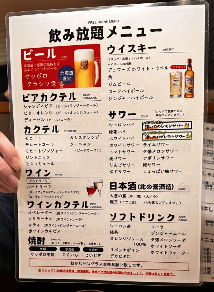 ビールは北海道限定のサッポロクラシックが楽しめるのが、さすが札幌です。