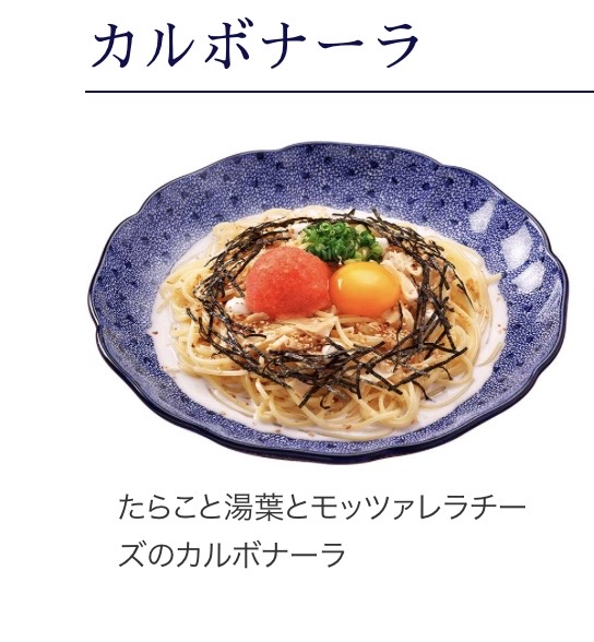 「たらこと湯葉とモッツァレラチーズのカルボナーラ」