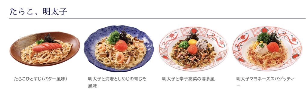 五右衛門パスタには、たらこ&明太子メニューがなんと5種類もある!!