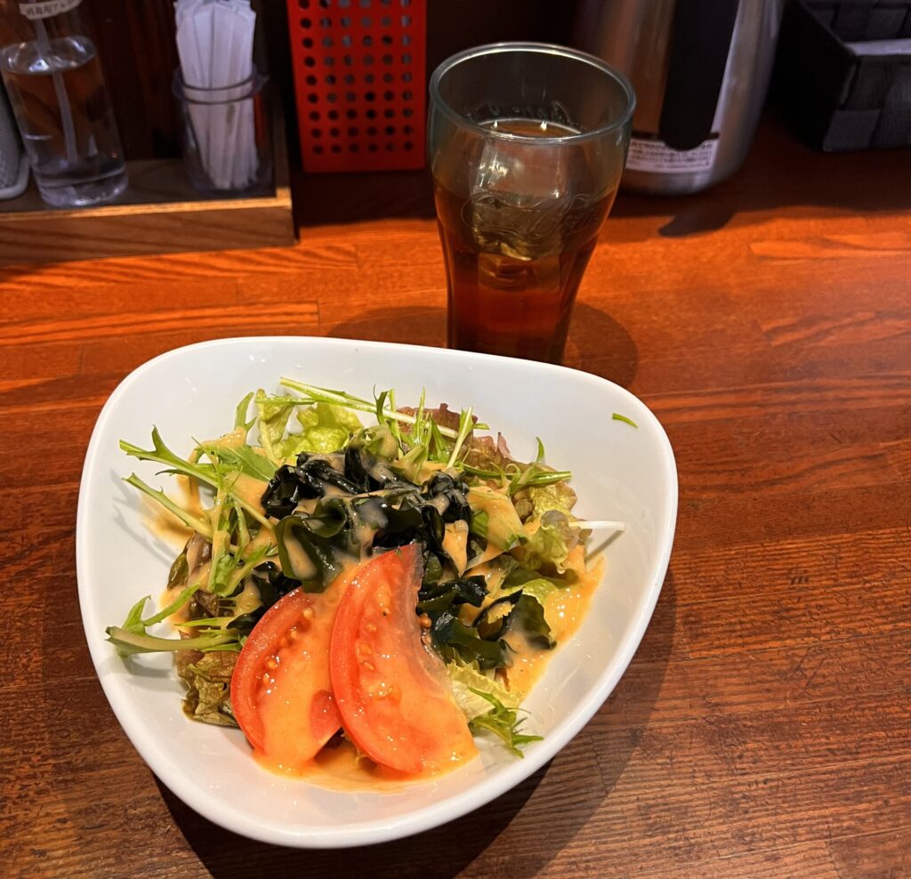 先に、追加で頼んだわかめサラダ(L)とアイスティーが到着!