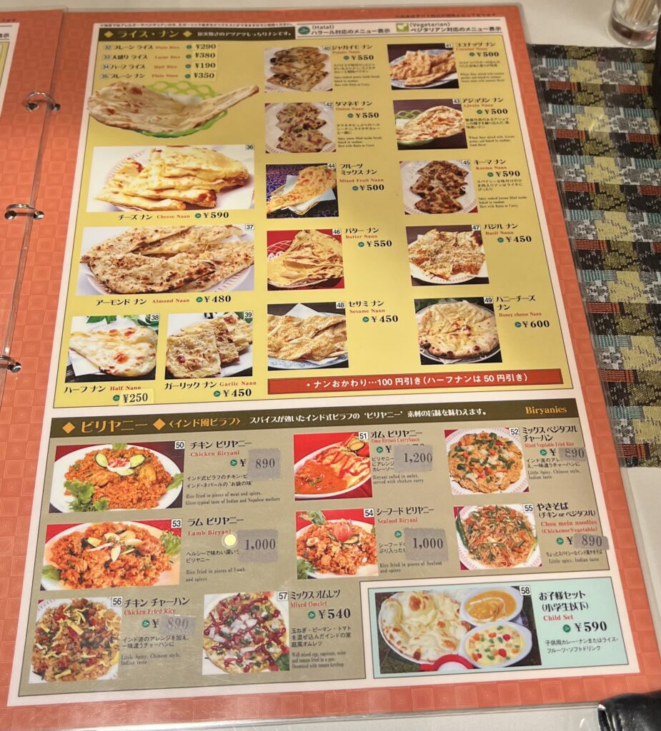 - お子様セット(小学生以下):子供用カレー、ナンまたはライス、フルーツ、ソフトドリンク付きで子供も大満足👶🍛