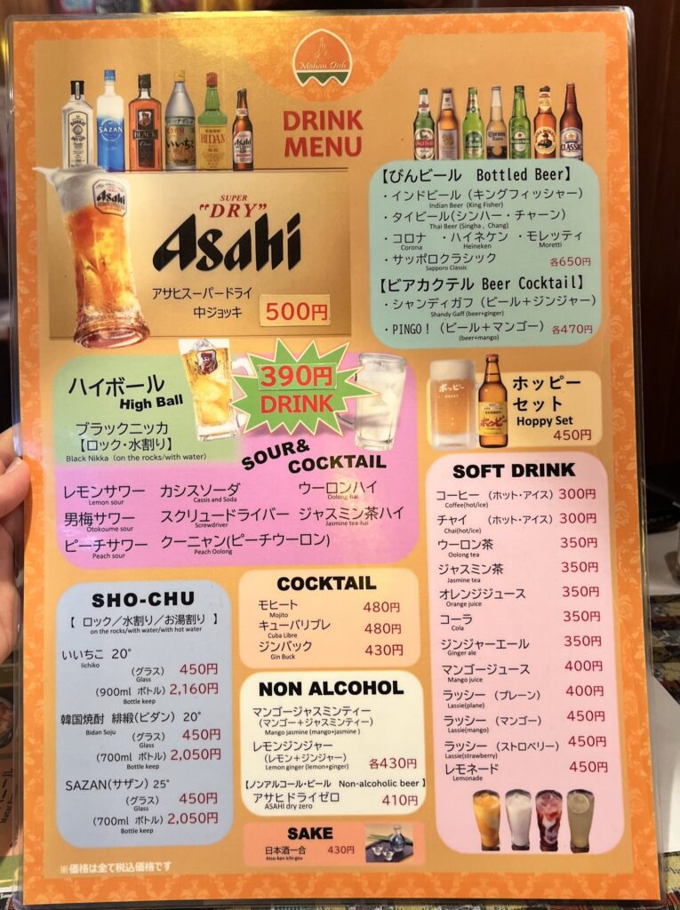 - ビール(スーパードライ):カレーとの相性抜群、食事がさらに楽しく🍺