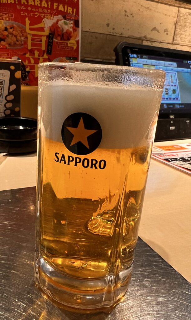 ビールから始まり、串焼き・串揚げ・レモンサワーを経て、