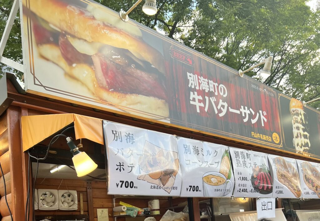 会場をぐるっと一周してすぐ、同僚ちゃんは「あれが食べたい!」と目を輝かせながら会場をキョロキョロ👀「別海町 牛バターサンド」を選びました!