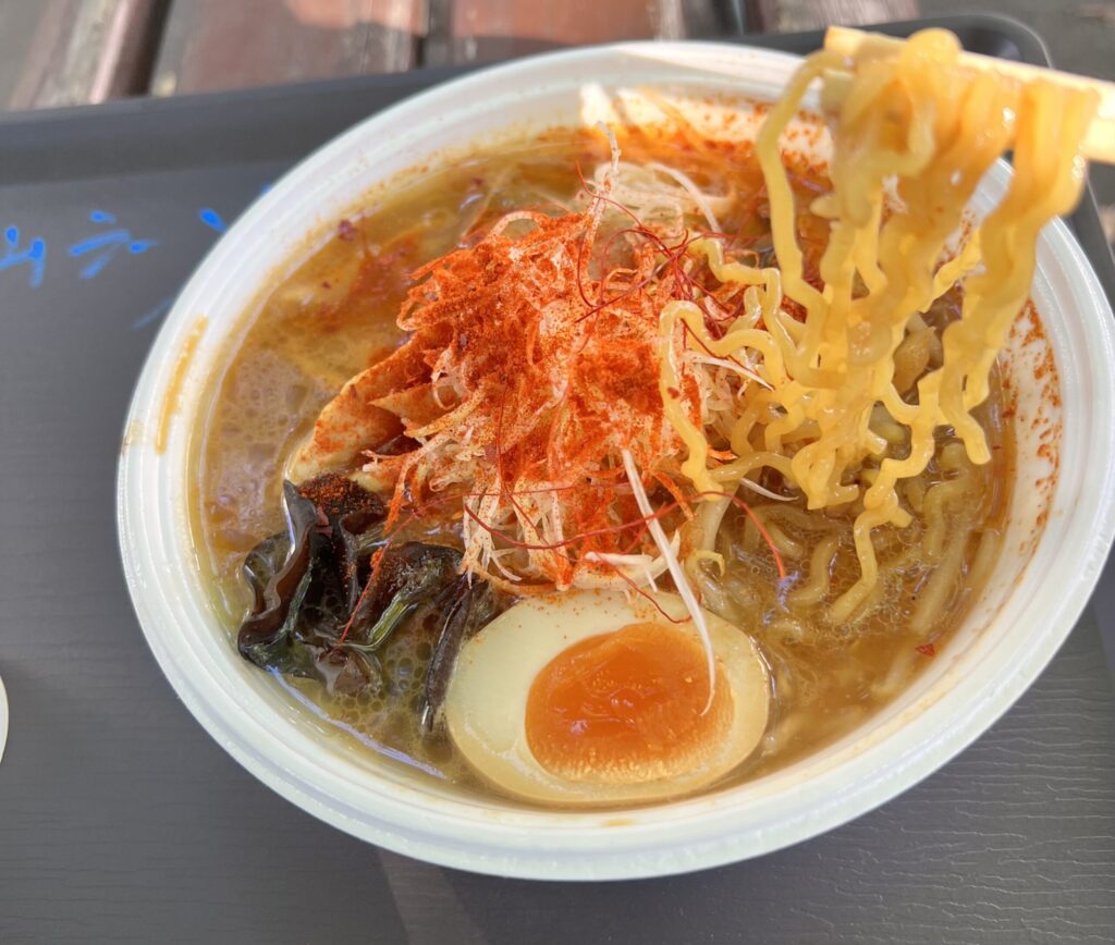 札幌オータムフェスト4丁目IN4スクエアで、噂の西山ラーメンをすすりながら、爽やかな香りのサッポロSORACHI 1984を流し込む贅沢タイム!
