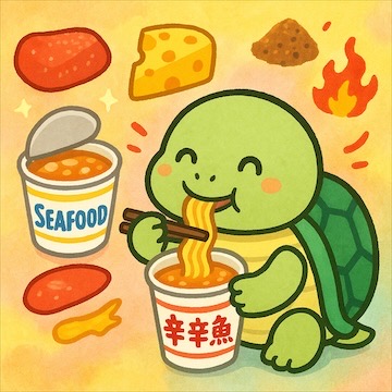世間では「激辛注意」って言われてるけど、辛ラーメンをピリ辛って言い張る亀さんをとしてはどう感じるのか?
